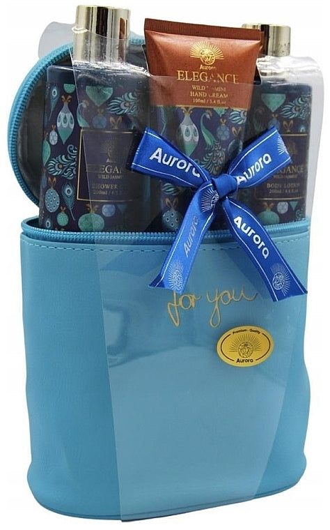 Conținutul setului: Gel de duș - Aurora Elegance Gel de duș cu Iasomie Sălbatică, 200 ml + Loțiune de corp - Aurora Elegance Loțiune de corp cu Iasomie Sălbatică, 200 ml + Cremă de mâini - Aurora Elegance Cremă de mâini cu Iasomie Sălbatică, 100 ml + Burete de corp - Aurora, 1 buc + Geantă cosmetică - Aurora, 1 buc