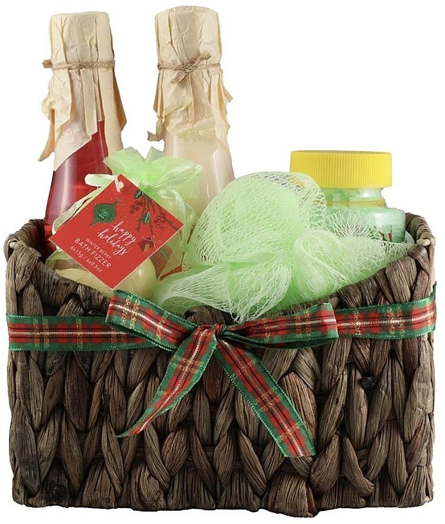 Continutul setului: balsam pentru corp, bombe pentru baie, burete pentru baie, gel de duş, sare de baie