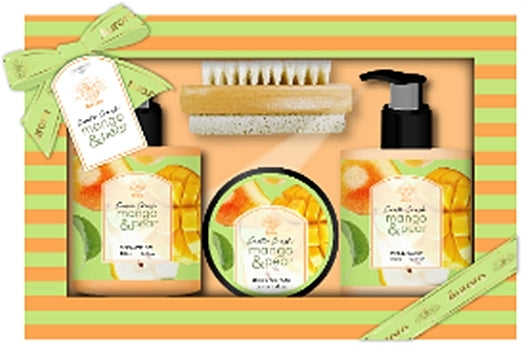 Setul include: Gel de duș - Aurora, 150 ml + Săpun lichid - Aurora, 150 ml + Scrub pentru corp - Aurora, 50 ml + Perie pentru corp - Aurora, 1 buc.